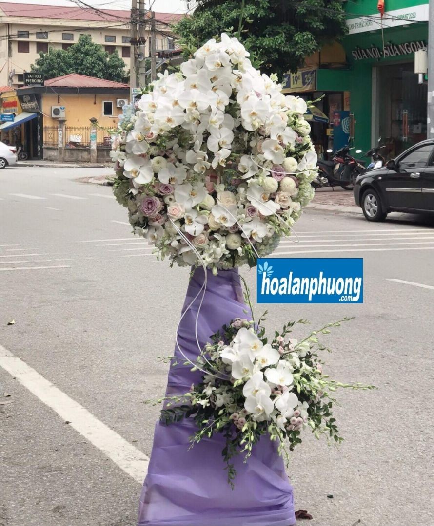Hoa tang lễ do Hoa Lan Phương thiết kế là những bông hoa đặc biệt được kết thành vòng với màu sắc chủ đạo là màu trắng thể hiện thành kính phân ưu và chia buồn sâu sắc cho gia chủ. Vòng hoa được kết dựa trên khung và thường được đính kèm ruy bằng màu đen hoặc màu trắng có ghi nội dung chia buồn của người gửi. Nếu không thể đến trực tiếp tham dự lễ tang, bạn có thể gửi qua dịch vụ giao hoa chia buồn tận nơi của Hoa Lan Phương.