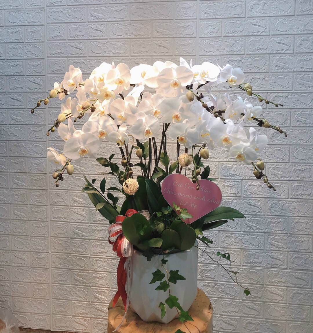Chậu lan hồ điệp trắng được các nhà thiết kế của Hoa Lan Phương ghép thành chậu hoa lan sang trọng và tinh tế. Chậu lan hồ điệp trắng thánh thiện là một món quà tặng chúc mừng không thể tuyệt vời hơn để dành tặng cho những người thân yêu hoặc đối tác khách hàng vào những dịp quan trọng chắc chắn sẽ làm mối quan hệ ngày càng phát triển và vững bền hơn bao giờ hết.