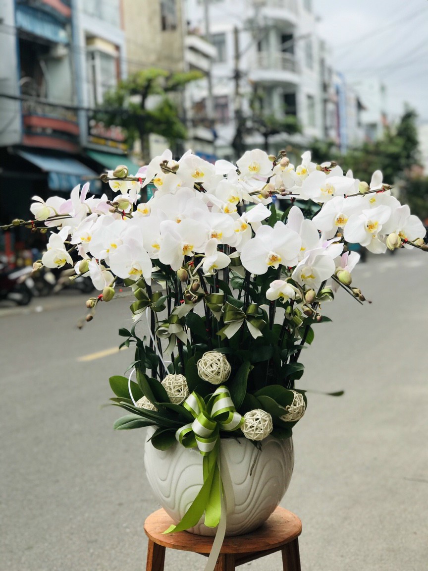 Chậu lan hồ điệp trắng được các nhà thiết kế của Hoa Lan Phương ghép thành chậu hoa lan sang trọng và tinh tế. Chậu lan hồ điệp trắng thánh thiện là một món quà tặng chúc mừng không thể tuyệt vời hơn để dành tặng cho những người thân yêu hoặc đối tác khách hàng vào những dịp quan trọng chắc chắn sẽ làm mối quan hệ ngày càng phát triển và vững bền hơn bao giờ hết.